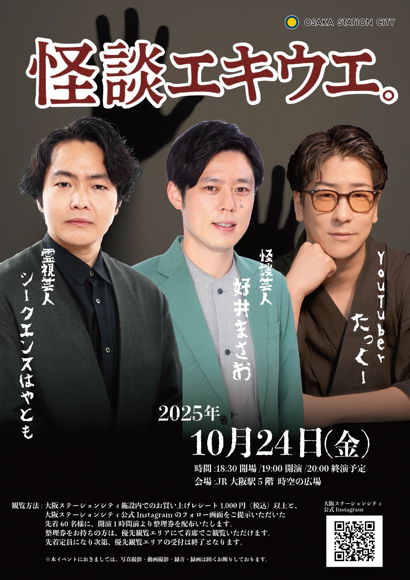 Events/campaigns Facilities in All Station premises Others Plaza Event of Now in progress In Osaka sta., 3800 yen all you can drink including tax! EKIUEBIATERASU kai... April 1, 2025-October 31, 2025 Toki-no-hiroba Plaza The event which is holding soon Ghost story EKIUE. October 24, 2025 Toki-no-hiroba Plaza