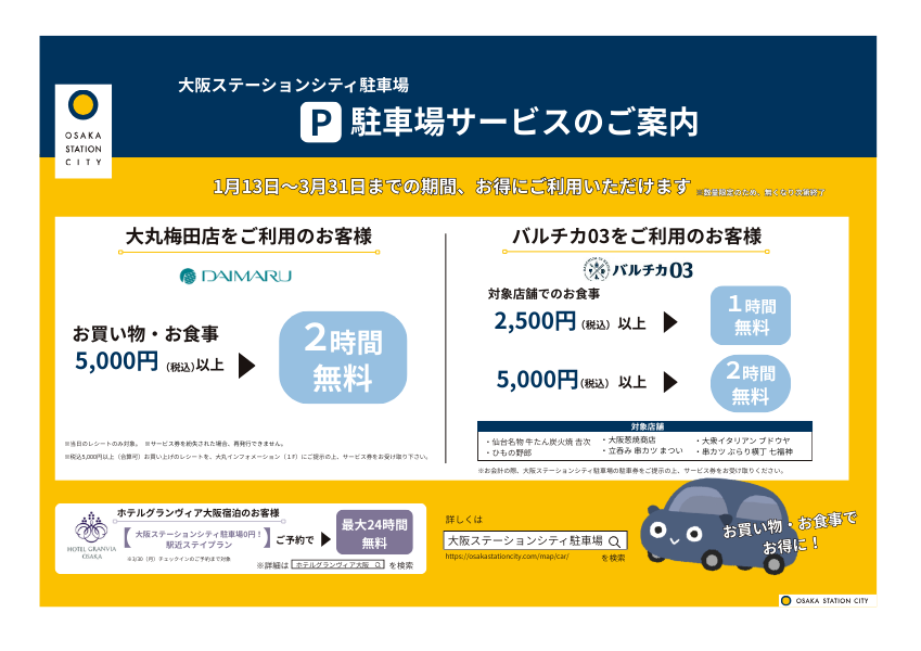 JR오사카역주변 맵 지하MAP 지상MAP 지역정보 스마트폰이나 휴대전화에서 QR코드를 읽어내면, 지도정보가 가지고 계신 단말이라도 볼 수 있습니다. 철도정보 열차운행 정보 시간표(JP) 노선도(EN) 구내도(EN) 이벤트·관광 정보 시각 ·운임검색 개최중의 이벤트 【오사카 스테이션 시티주차장】주차장 서비스의 … 2026년01월13일∼2026년03월31일 OSAKA STATION CITY 『영화 도라에몽 신·노비타의 해저귀신 이와키』해저대冒… 2026년02월14일∼2026년03월31일 OSAKA STATION CITY 지나치게 맛있는 거리으로부터의탈출∼ 풀 만큼에 지나치게 맛있다 … 2026년01월30일∼2026년03월31일 OSAKA STATION CITY 이제 곧 대여OK! 셀프WiFi대여 「WiFiBOX」 2025년04월01일∼2028년03월31일 OSAKA STATION CITY 매월 2일은 서쪽의 날에서 이익! WESTER포인트가 거의 4배! 2024년10월02일∼2026년03월31일 OSAKA STATION CITY 봄의 디너를 화려하게 띄는 야경과 함께 「철판구이瑞」 2026년03월01일∼2026년05월31일 오사카 스테이션 호텔 레스토랑 【철판구이瑞】눈앞의 철판으로 만드는 프렌치 풀… 2026년03월01일∼2026년05월31일 오사카 스테이션 호텔 레스토랑 【BLUE YARD】가노우 신고(p)솔로 2026년03월02일∼2026년03월08일 BARCHICA03 【하구오루푸레오푼】매입 이벤트 2026년02월16일∼2026년03월16일 KITTE오사카 봄의 꾸며줘 넘치는 철판구이 풀코스를, 런치타임… 2026년03월01일∼2026년04월30일 오사카 스테이션 호텔 레스토랑 새콤달콤하게 향기 나는, 브랜드 딸기의 사치 스위트 「THE… 2025년12월16일∼2026년03월08일 오사카 스테이션 호텔 레스토랑 【3∼5월】싹트기의 계절을 맛보는, 각양 각색의 미식… 2026년03월01일∼2026년05월31일 오사카 스테이션 호텔 레스토랑 MY CRAFT WORKSHOP 2026년02월15일∼2026년03월22일 KITTE오사카 UMEKITA GREEN PLACE1주년 기념! 2026년02월12일∼2026년03월31일 UMEKITA GREEN PLACE TOM and JERRY×TULLY’S COFFEE 2026년02월18일∼2026년03월17일 서포트 플라자 KAWAII LAB.× TOWER RECORDS CAFE 2026년02월05일∼2026년03월08일 기타 구역 【모스버거UMEKITA GREEN PLACE점】 맛있다 … 2026년01월28일∼2026년03월17일 UMEKITA GREEN PLACE 【12월26일∼3월8일】브랜드 딸기를 만끽 하늘浮 좋다 … 2025년12월26일∼2026년03월08일 오사카 스테이션 호텔 레스토랑 【2월∼4월의 토.일.축재일 개최】지복의 딸기【붓페】 2026년02월07일∼2026년04월29일 호텔 그란비아 오사카 레스토랑 플로어 【마루가메제 면】품과 시간 포갠 겨울의 갓 만든 것, 새등장. 3… 2026년01월14일∼2026년03월15일 UMEKITA GREEN PLACE MLB™관전 티켓 부 투어라면 JTB! 2025년12월15일∼2026년09월24일 서포트 플라자 LUCUA, 매일, 옷의 회수 계속합니다. 2025년05월26일∼2026년03월31일 LUCUA 레스토랑・카페 레스토랑 · 카페 검색 일식 오늘의 밥 와사이노쿠니 오사카역 구내・기타 일식 불고기사쓰마 오사카역 구내・기타 일식 2대째 가즈유키舍 오사카역 구내・기타 기타 다코야키 맛집 도톤보리 쿠쿠루 오사카역 구내・기타 일식 구시카츠 마쓰바 오사카역 구내・기타 대폿집・바 HUB 오사카역 구내・기타 스위트・카페 스타벅스 커피 오사카역 구내・기타 일식 낮술장고 차 오사카역 구내・기타 기타 면집 오사카미도 오사카역 구내・기타 기타 면가 오사카 오사카역 구내・기타 스위트・카페 KITH TREATS 오사카역 구내・기타 이탈리안 요리・프렌치 【사쿠레후루루】∼makibi∼ 오사카역 구내・기타 이탈리안 요리・프렌치 oyster&italian skai 오사카역 구내・기타 양식 THE PUBLIC PLUM 오사카역 구내・기타 일식 무엇 와면 지로 미야 오사카역 구내・기타 기타 세븐일레븐 하트 인 오사카역 구내・기타 기타 LA BODEGA - CUCHAREO 오사카역 구내・기타 일식 불고기소경 오사카역 구내・기타 스위트・카페 미스터도너츠 오사카역 구내・기타 일식 마루가메제 면 오사카역 구내・기타 기타 모스버거 오사카역 구내・기타 기타 켄터키 프라이드치킨 오사카역 구내・기타 일식 𠮷노케 오사카역 구내・기타 기타 Eggs'n Things 오사카역 구내・기타 스위트・카페 스타벅스 오사카역 구내・기타 베이커리 R Baker 오사카역 구내・기타 일식 만 야본점 오사카역 구내・기타 이탈리안 요리・프렌치 VOLTA 오사카역 구내・기타 스위트・카페 YORKYS Creperie / PIECE OF BAKE 오사카역 구내・기타 스위트・카페 LE PINEAU 오사카역 구내・기타 중화・아시아 요리 면동그라미 쇼 에키마르쉐 오사카점 오사카역 구내・기타 일식 우려낸 국물 고바야시 오사카역 구내・기타 중화・아시아 요리 대중식당 ROOKIE 오사카역 구내・기타 스위트・카페 스타벅스 커피 JR오사카역북쪽점 오사카역 구내・기타 스위트・카페 오사카 스테이션 시티 BAR・DEL SOLE 오사카역 구내・기타 스위트・카페 델리카페 키친 오사카 오사카역 구내・기타 스위트・카페 델리카페 익스프레스 오사카 오사카역 구내・기타 스위트・카페 델리카페 키친 오사카 미도 오사카역 구내・기타 스위트・카페 가라배집CAFE오사카점 오사카역 구내・기타 중화・아시아 요리 한국 김초밥 전문점보리의 집 오사카역 구내・기타 기타 오키나와 식당 하이 코뿔소 오사카역 구내・기타 스위트・카페 【고히갸라리히로】 오사카역 구내・기타 대폿집・바 산중술의 가게 오