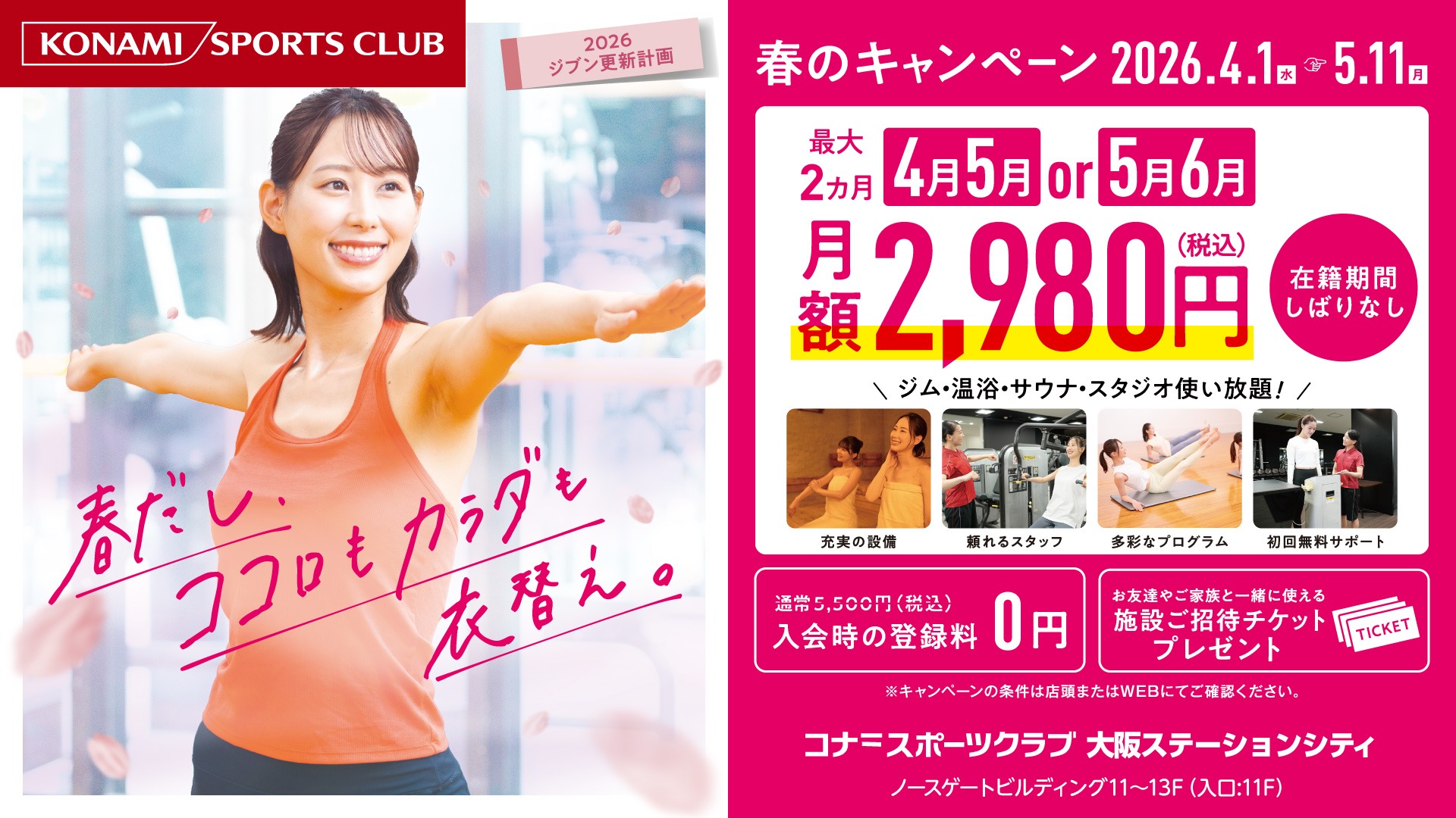 | 地方 | 科樂美健身俱樂部大阪車站城 |