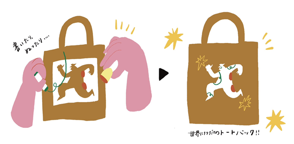 是對美術家YANG YANG 寫的插圖涂顏色,描畫或者喜歡東西製造原創大手提袋的研究會。