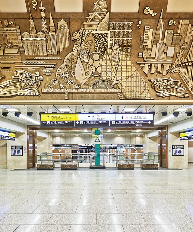 廣場 一覽 1F 出發的廣場 1874年開業時的大阪站為開車信號被使用的「報時鐘」復活。 持續注視許多的出發的歷史的證人注視的等候地點。 去這個場所的方法 智能手機和手機領會QR編碼,地圖資訊用帶著的終端也能請看。