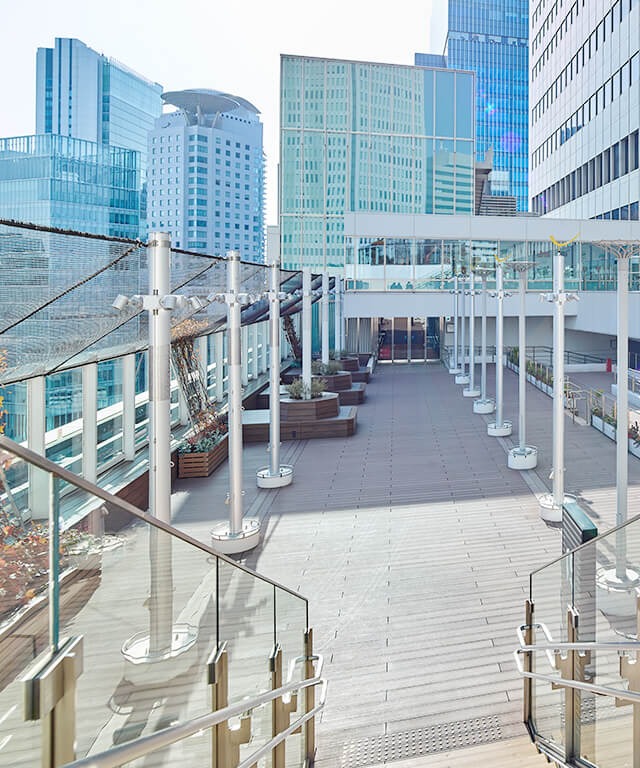 收割由於製作綠陰的,構成舒適的空間的西班牙風中庭(中庭)的智慧,在光和綠中,演出放心象使舒暢一樣的空間。15層的涼台,以在感到土色的花盆,暖色的草花等,能源的顏色上(裡)一邊感到講究,風微微搖動的果樹的香味兒,一邊恢復精神一邊可以過象能能源收費一樣的,過午的片刻的空間演出作為目標。大阪的街能一望的17層的甲板,要成為風景的綠背景,對長凳花盆,做自然色的草花分配植,在模糊地散髮香味的草花和風上(裡)被包圍,稍微偏離喧囂,請享受城市的風景。